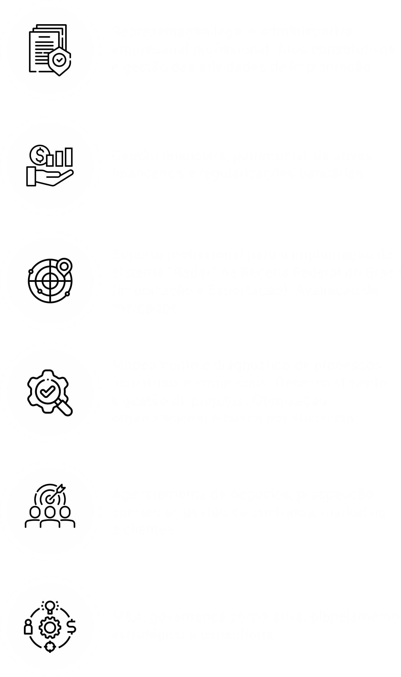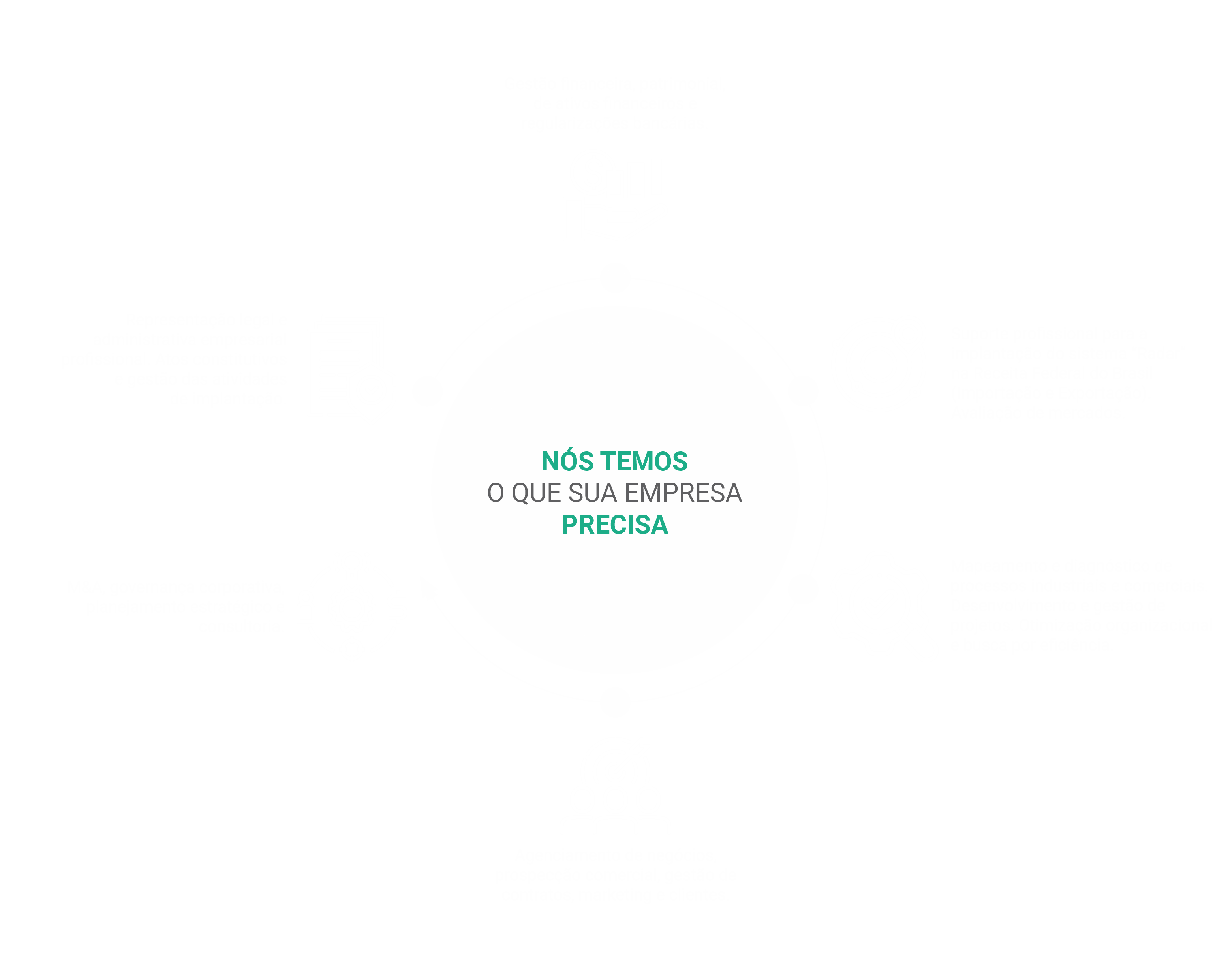 Nossa oferta de serviços abrange todas as etapas, desde a representação, constituição, gestão e agenciamento do seu negócio, até o alinhamento estratégico com o core business dos seus clientes.